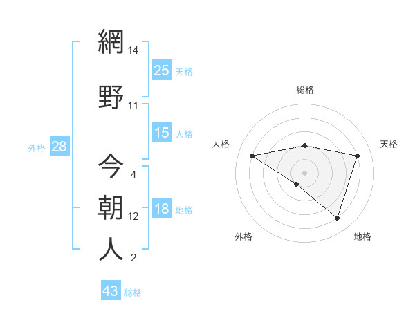 網野 今朝人さんを姓名の画数から五運を鑑定