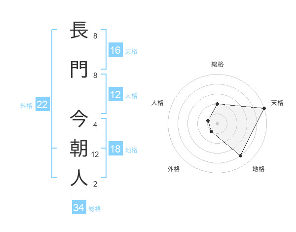 長門 今朝人さんを姓名の画数から五運を鑑定