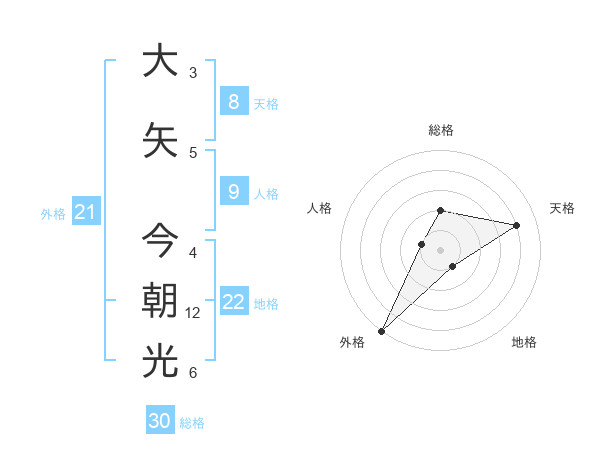 大矢 今朝光さんを姓名の画数から五運を鑑定