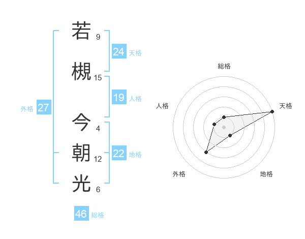 若槻 今朝光さんの総格は46画の1点!
