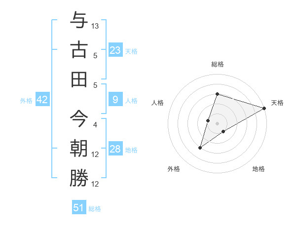 与古田 今朝勝さんを姓名の画数から五運を鑑定