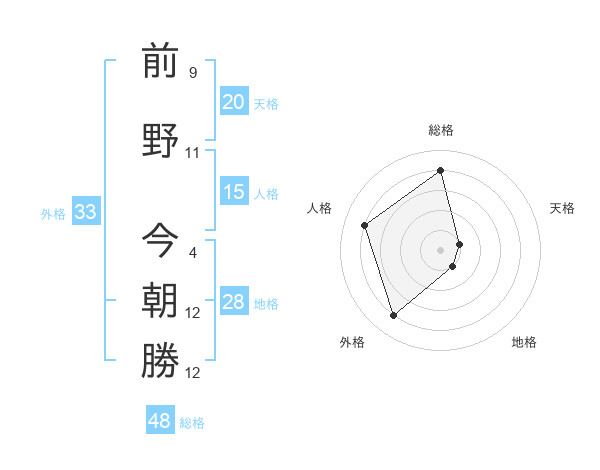 前野 今朝勝さんを姓名の画数から五運を鑑定