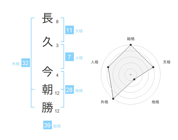 長久 今朝勝さんの総格は39画の5点!