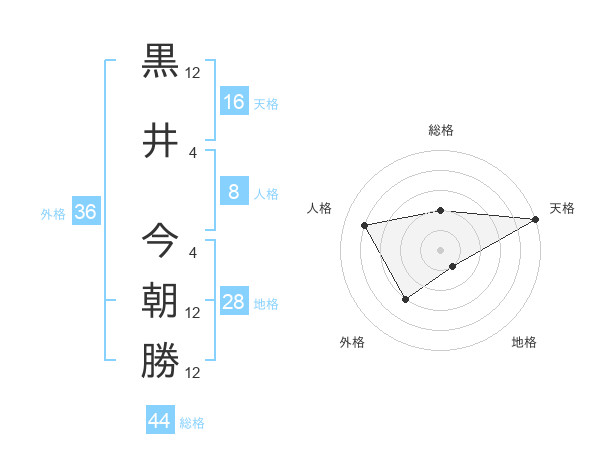 黒井 今朝勝さんを姓名の画数から五運を鑑定
