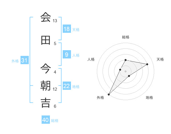会田 今朝吉さんを姓名の画数から五運を鑑定