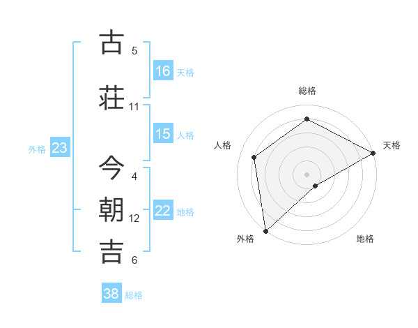 古荘 今朝吉さんを姓名の画数から五運を鑑定