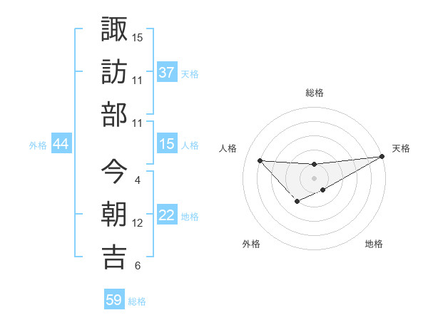 諏訪部 今朝吉さんを姓名の画数から五運を鑑定