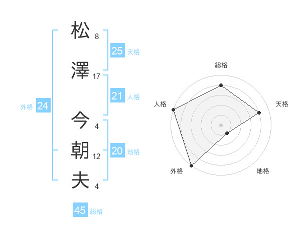 松澤 今朝夫さんを姓名の画数から五運を鑑定