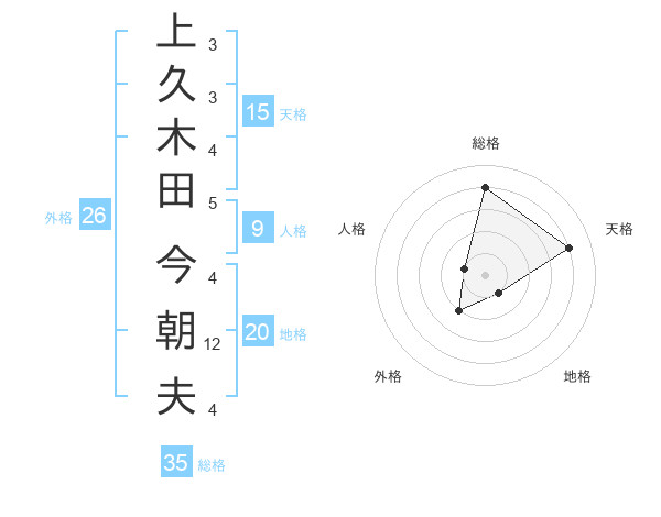 上久木田 今朝夫さんを姓名の画数から五運を鑑定