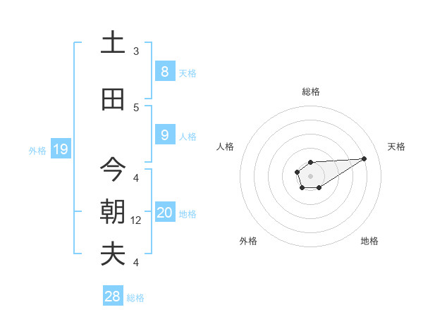 土田 今朝夫さんを姓名の画数から五運を鑑定