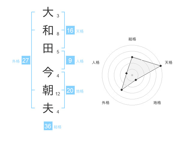 大和田 今朝夫さんを姓名の画数から五運を鑑定