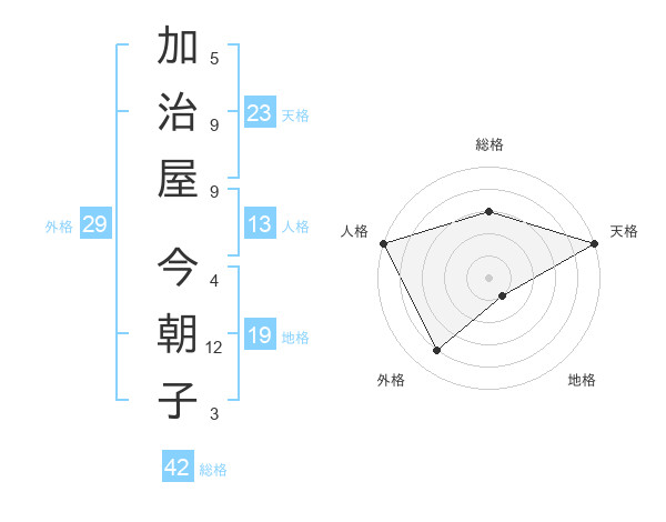 加治屋 今朝子さんを姓名の画数から五運を鑑定