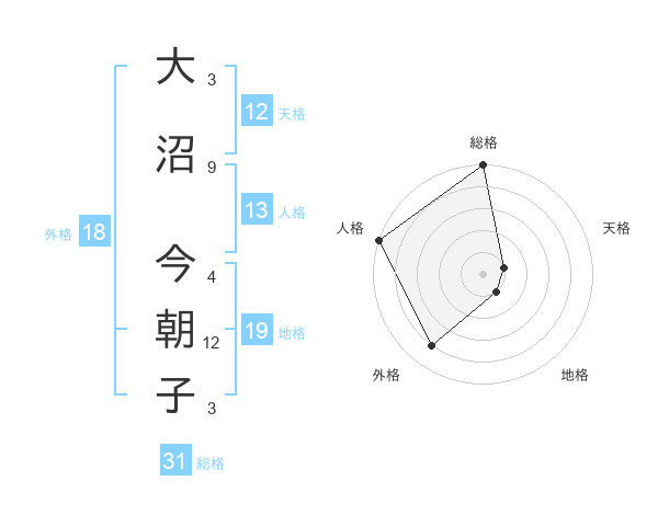 大沼 今朝子さんを姓名の画数から五運を鑑定