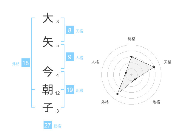 大矢 今朝子さんを姓名の画数から五運を鑑定