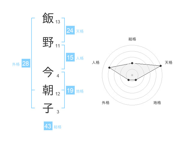 飯野 今朝子さんを姓名の画数から五運を鑑定