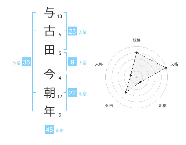 与古田 今朝年さんを姓名の画数から五運を鑑定
