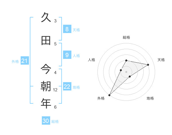 久田 今朝年さんを姓名の画数から五運を鑑定