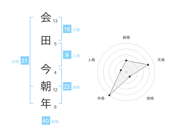 会田 今朝年さんを姓名の画数から五運を鑑定