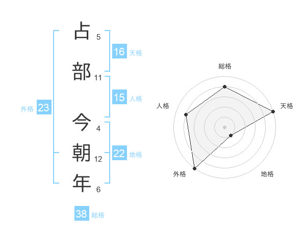 占部 今朝年さんの総格は38画の4点!