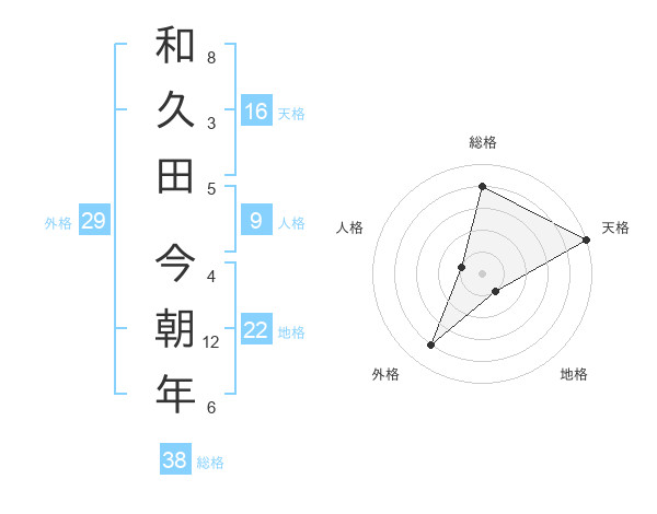 和久田 今朝年さんを姓名の画数から五運を鑑定