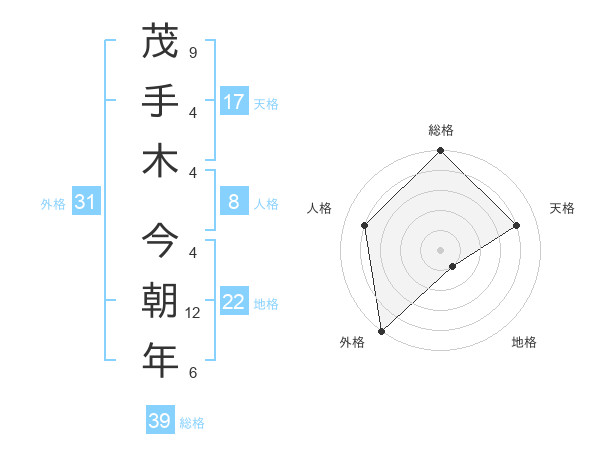 茂手木 今朝年さんを姓名の画数から五運を鑑定