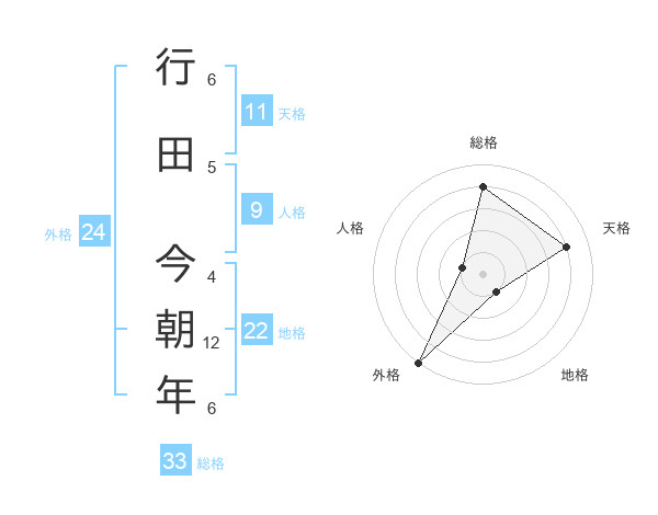 行田 今朝年さんを姓名の画数から五運を鑑定