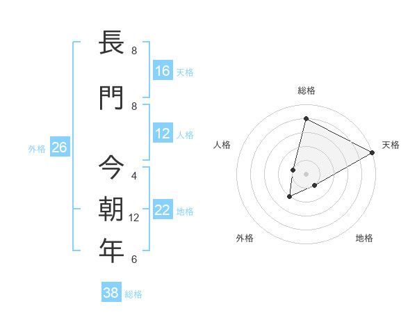 長門 今朝年さんを姓名の画数から五運を鑑定