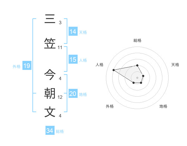 三笠 今朝文さんを姓名の画数から五運を鑑定