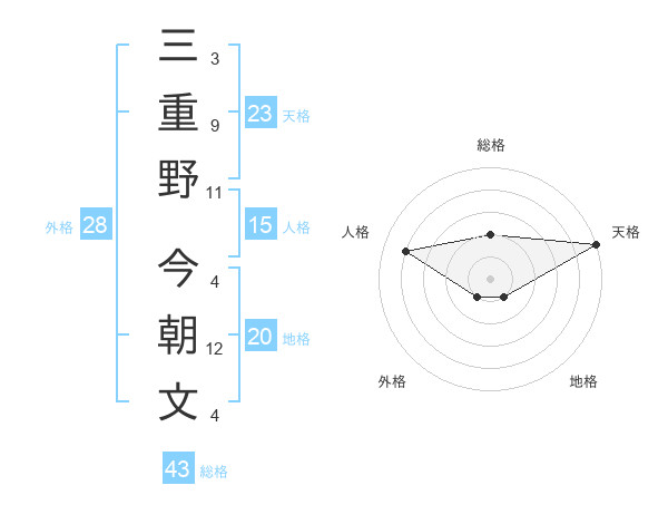 三重野 今朝文さんを姓名の画数から五運を鑑定