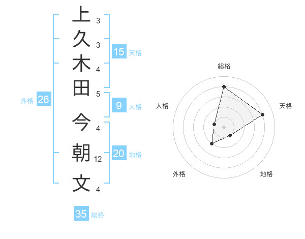 上久木田 今朝文さんの総格は35画の4点!