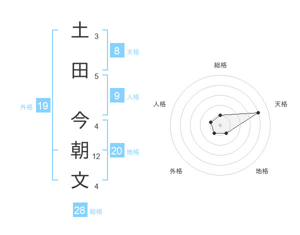 土田 今朝文さんを姓名の画数から五運を鑑定