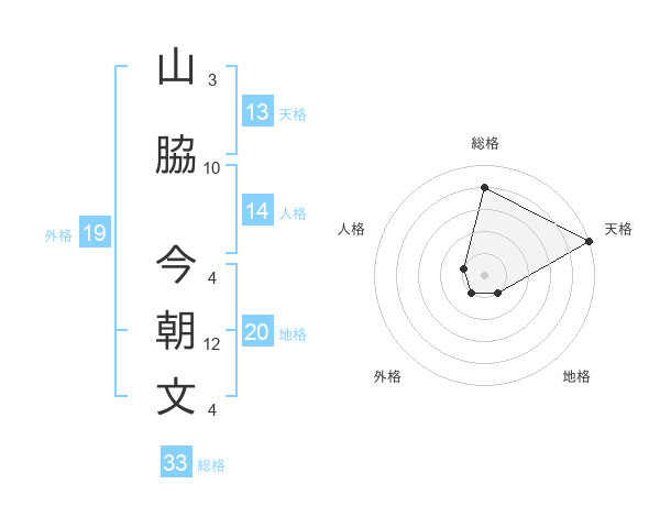 山脇 今朝文さんを姓名の画数から五運を鑑定