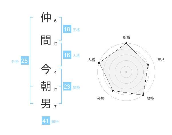仲間 今朝男さんを姓名の画数から五運を鑑定
