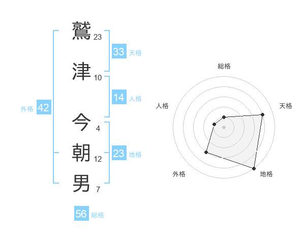 鷲津 今朝男さんを姓名の画数から五運を鑑定
