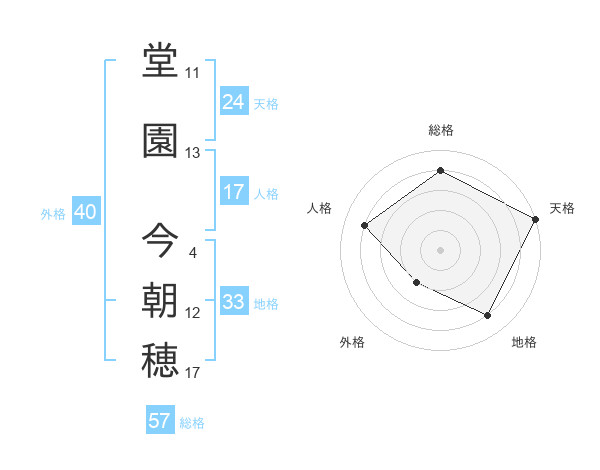 堂園 今朝穂さんの総格は57画の4点!