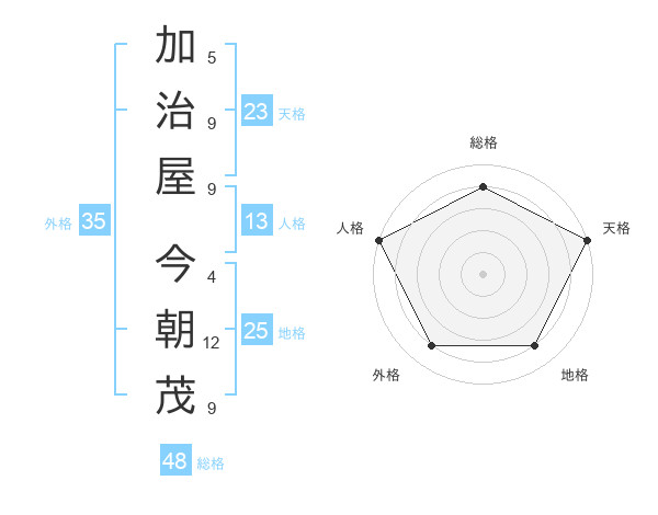 加治屋 今朝茂さんを姓名の画数から五運を鑑定