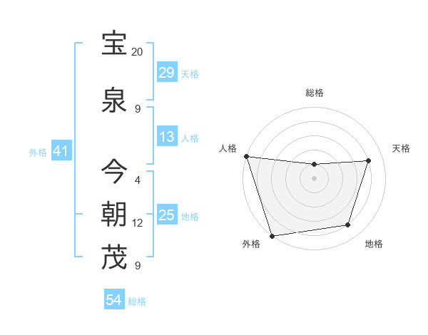 宝泉 今朝茂さんの外格は41画の5点!