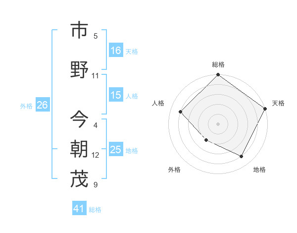 市野 今朝茂さんを姓名の画数から五運を鑑定