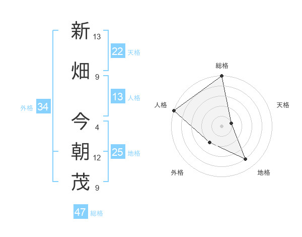 新畑 今朝茂さんを姓名の画数から五運を鑑定