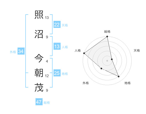 照沼 今朝茂さんを姓名の画数から五運を鑑定