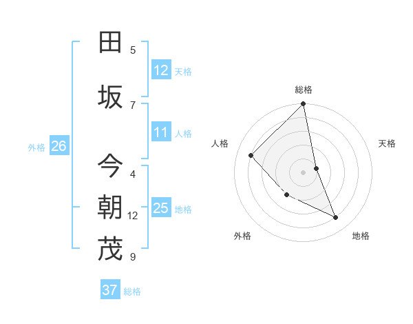 田坂 今朝茂さんを姓名の画数から五運を鑑定