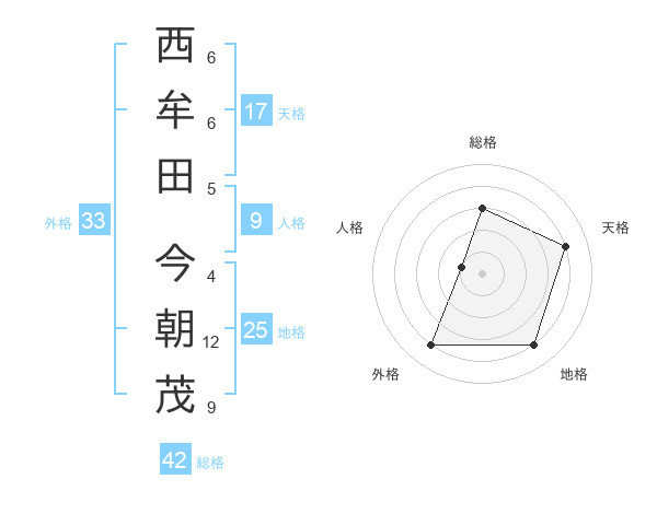西牟田 今朝茂さんを姓名の画数から五運を鑑定