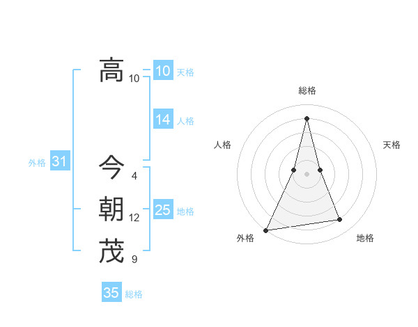 高 今朝茂さんを姓名の画数から五運を鑑定