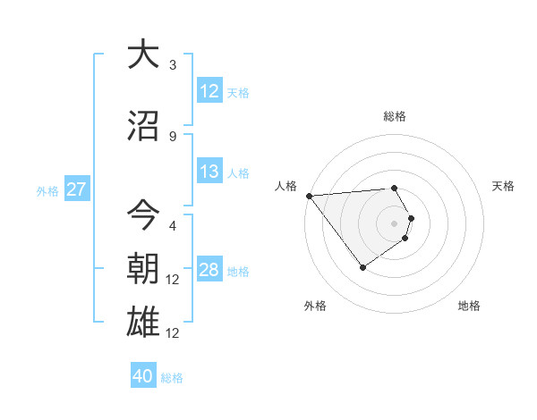 大沼 今朝雄さんを姓名の画数から五運を鑑定
