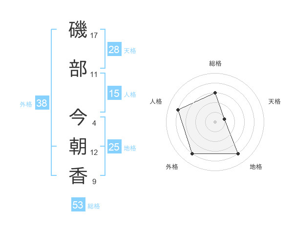 磯部 今朝香さんを姓名の画数から五運を鑑定