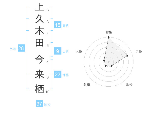上久木田 今来栖さんを姓名の画数から五運を鑑定