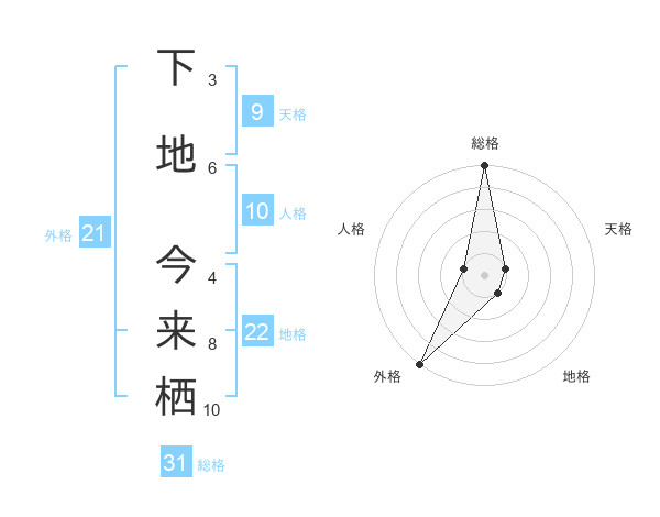 下地 今来栖さんの総格は31画の5点!
