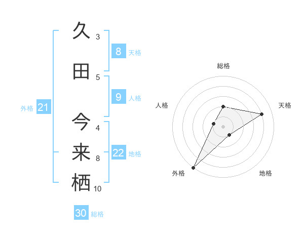 久田 今来栖さんを姓名の画数から五運を鑑定