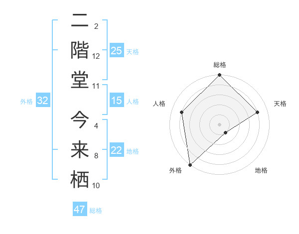 二階堂 今来栖さんを姓名の画数から五運を鑑定