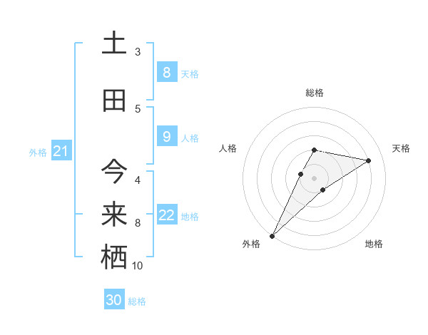 土田 今来栖さんを姓名の画数から五運を鑑定